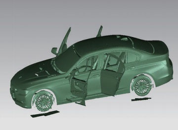 采用高精度攝影測量系統(tǒng)與3DSS三維掃描儀配合使用的方法,可以完成對大型物品的三維外觀掃描,如汽車、戰(zhàn)斗機(jī)、船模、大型鑄造件等,可掃描10多米的物品。
